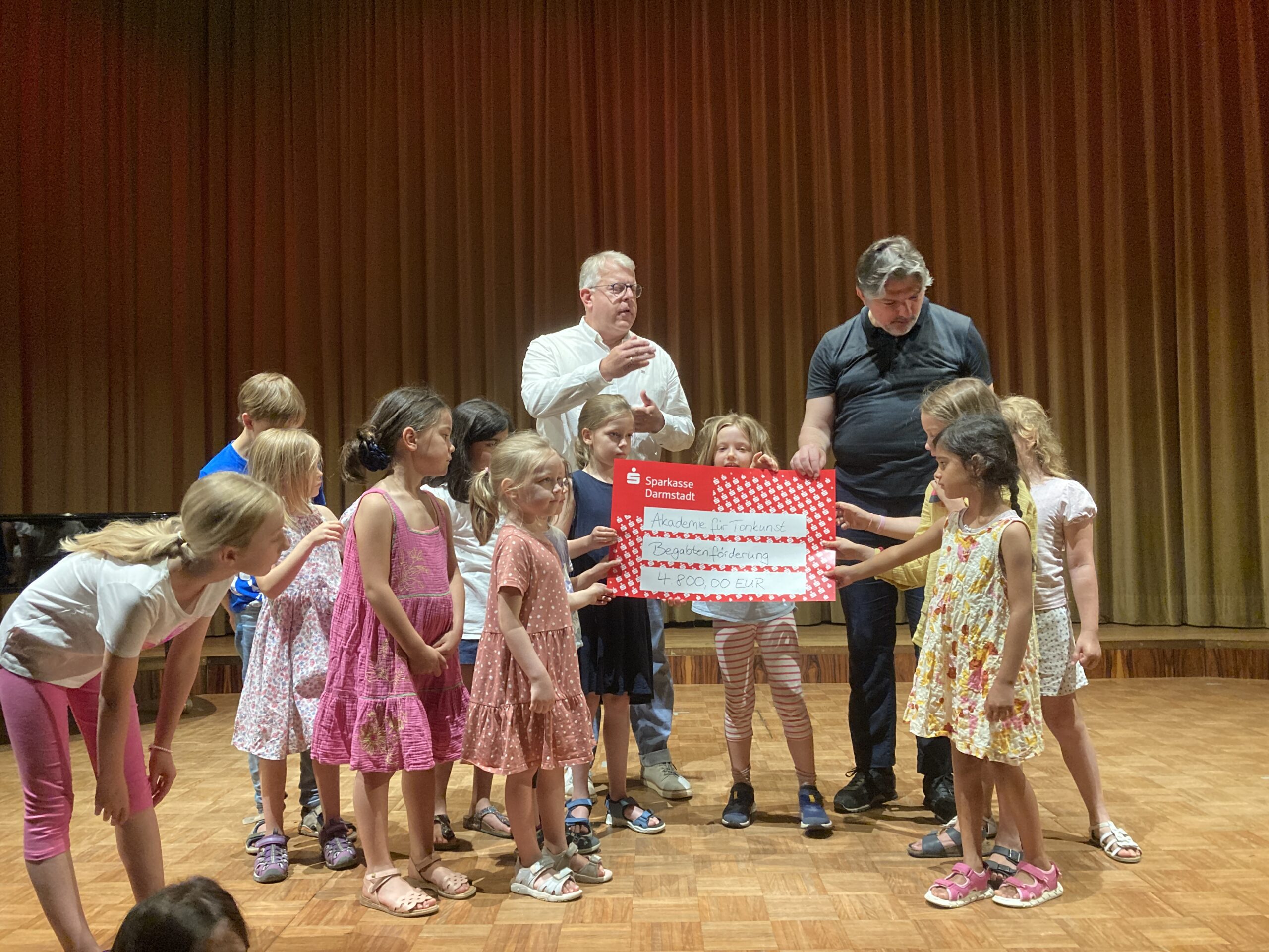 Alle Veranstaltungen waren kostenfrei, und die hohe Spendenbereitschaft der Besucher unterstrich die Wertschätzung für die Arbeit der Akademie. Wir bedanken uns insbesondere bei der Sparkasse Darmstadt, vertreten von Herrn Ralf Bernhard, für die Überreichung eines großzügigen Schecks für die Begabtenförderung der Musikschule.